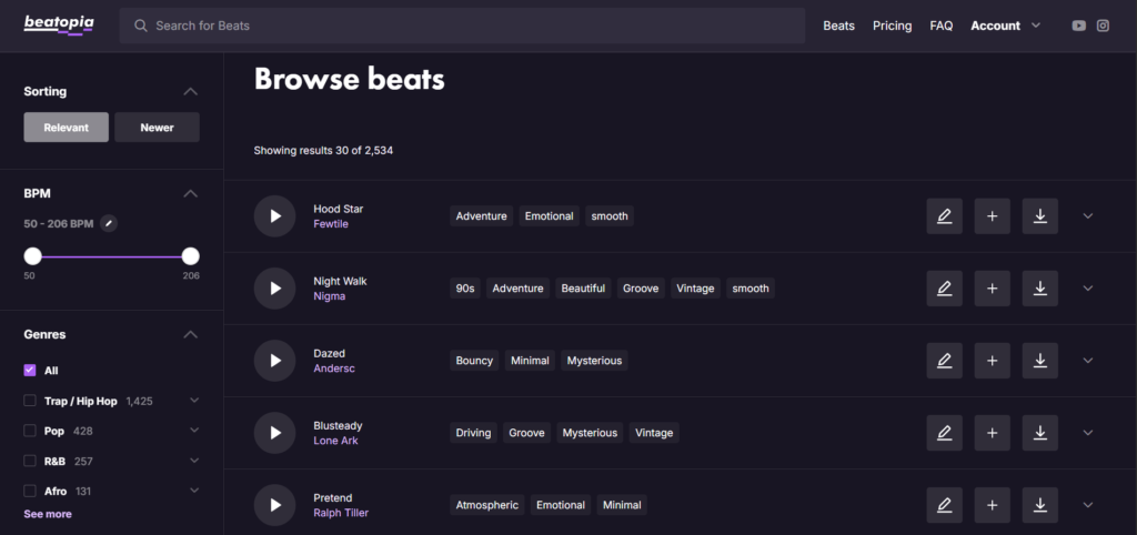 Beatopia AI is a music platform where artists can find hot beats made by Grammy-winning producers who have worked with stars like Gunna, Bad Bunny, and Kehlani. With one subscription, you get unlimited access to exclusive beats in styles like Trap, R&B, Drill, Afrobeat, and more. Every beat includes a high-quality .wav file and 5 stems, so you can mix it your way. You don’t have to pay for each beat just subscribe and use as many as you want, with unlimited rights. No ads, no limits, just great music made for serious creators.