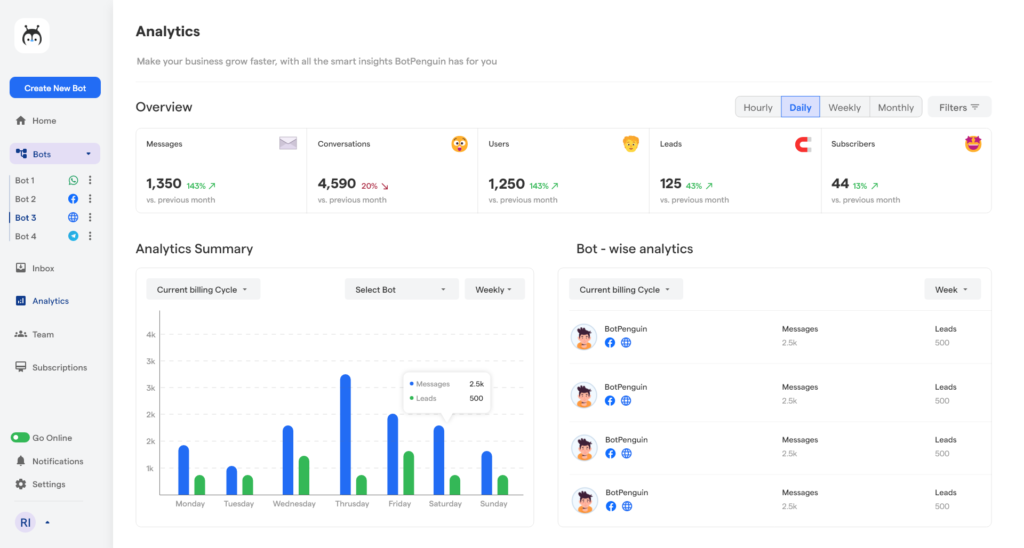 Botpenguin offers 30 days refund policy on their subscriptions.