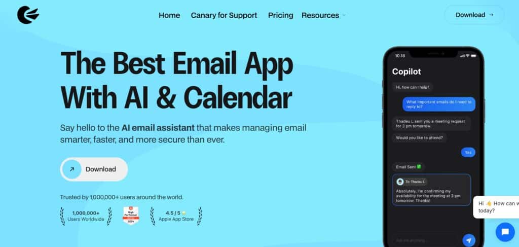 Canary Mail is a visually appealing email client that supports multiple accounts and integrates AI features like smart sorting and email writing. It handles encryption well and offers a unified inbox with customization options. However, some users report slow performance and unreliable inbox sync on certain platforms.