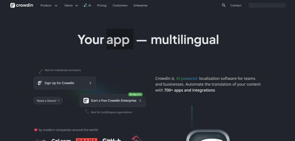 Crowdin is an AI-powered localization platform that helps teams turn their apps, websites, games, and docs into many languages in one place. It is cloud-based, so developers, translators, and managers can work together online at the same time. With Crowdin, you connect your tools (like code repos, design tools, and CMS) using hundreds of integrations, then let automation and machine translation do the heavy work while humans review and improve the text. The platform gives translators a smart editor with translation memory, glossaries, and quality checks, plus new AI helpers for proofreading and better context, so translations can be fast, consistent, and high quality. Crowdin also offers a free plan for open-source and educational projects, which makes it popular in many developer and non-profit communities.