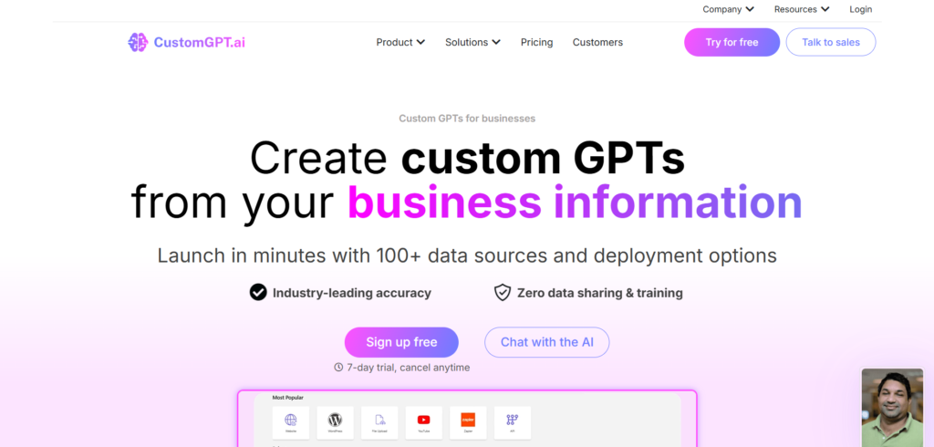 After testing CustomGPT.ai like I test other “chatbot from your data” tools, it feels fast to set up and easy to deploy, and I like that it can embed on a site, work as a live chat widget, and even run inside Slack for team questions. The RAG API and Python SDK are useful if you want more control, and the Auto-sync feature is great when your website changes often. But it is not perfect: the price jumps a lot if you need Premium features like auto-sync or white-label, and some users still mention reliability and “it needs improvement” in reviews, so you should test real questions and clean your content before trusting it fully.