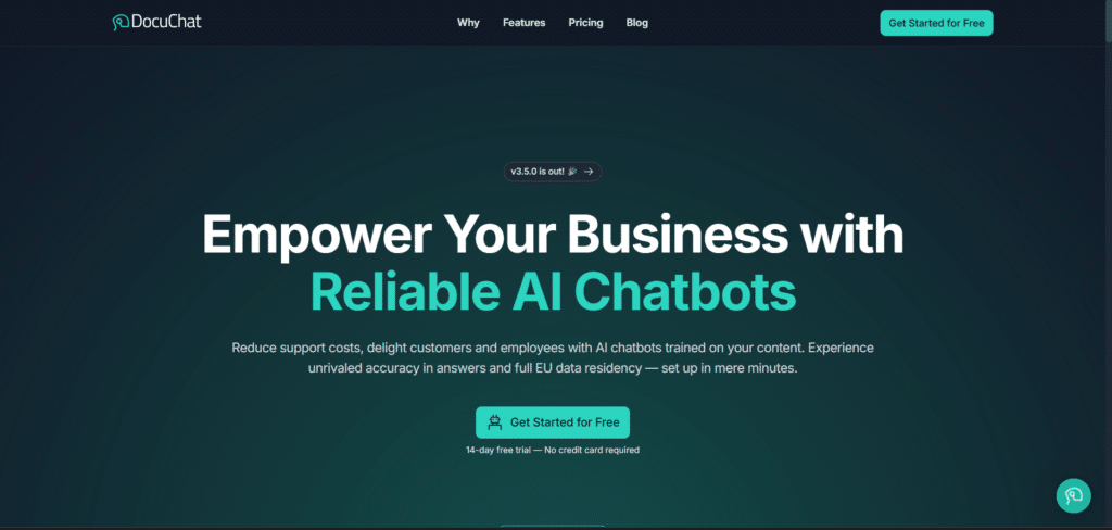 DocuChat is a smart and easy-to-use tool that lets you create AI chatbots trained on your own documents, websites, or Google Drive folders. You can set it up in just a few minutes, without any coding. These chatbots help answer questions for customer support, HR, IT, and more—saving up to 70% in support costs. The answers are very accurate and even include citations, so users know where the info comes from. DocuChat works in any language, keeps all your data safe in the EU, and doesn’t use your info to train AI. You can customize everything, share or embed the bot easily, and track how well it’s doing with smart analytics. It’s perfect for both small projects and big teams, and you can try it free for 14 days.