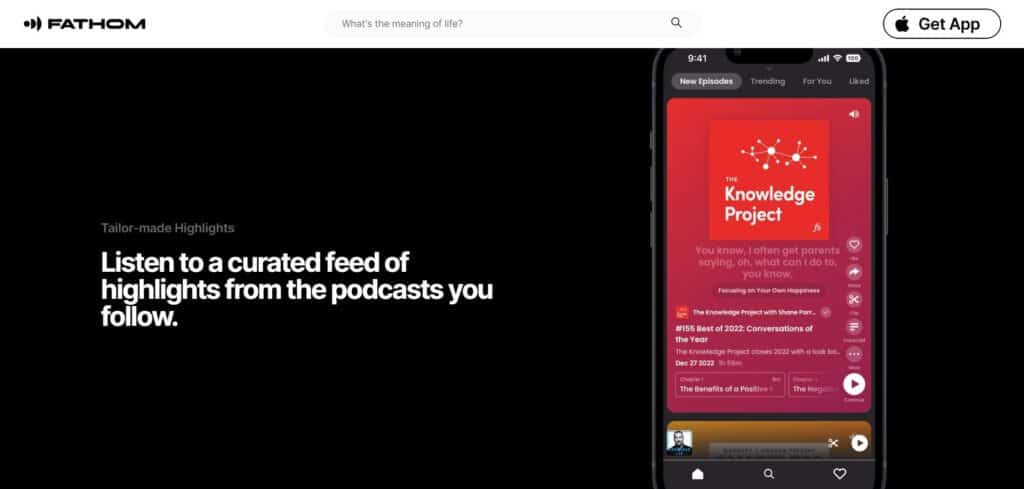 Fathom is a podcast app praised for its AI-powered search that accurately understands and indexes podcast content, allowing users to find relevant spots easily. It offers features like transcripts, chapters, and episode previews, providing an efficient and enhanced listening experience.