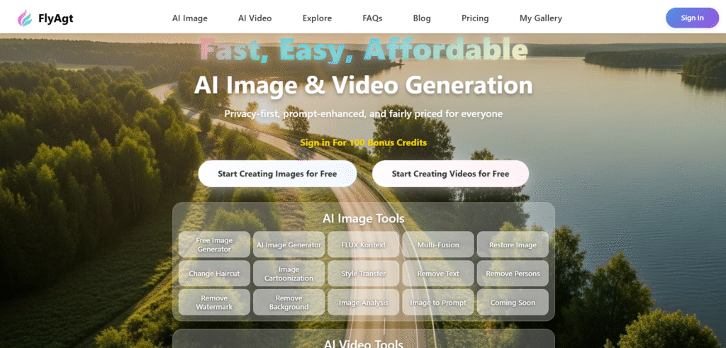 After using many AI tools before, I found FlyAgt to be very fast and simple to use. The image and video results were often great, and I liked that even free users get clean downloads without watermarks. The tools like photo restore and background remove worked well most of the time, but not always perfect sometimes small details looked a bit off. Also, some video models took longer to finish or didn’t match the prompt exactly. The UI is easy to understand, but switching between tools can feel a little slow. Still, for the price and features, it’s a strong platform, especially if you want to try many things in one place.