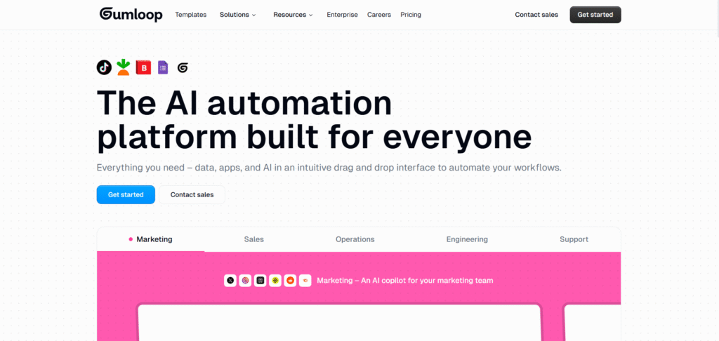 Gumloop is an AI automation platform that lets anyone connect their data, apps, and AI models in a simple drag-and-drop interface, so you can build powerful workflows without writing code. It works like “Zapier plus ChatGPT” you plug in tools like Gmail, Slack, Salesforce, Stripe, or Google Sheets, then let AI read data, make decisions, and take actions for you. Big companies like Instacart, Webflow, and Shopify already use it to automate marketing, sales, and support tasks, and even people who are not technical can set up AI agents to do things like summarise tickets, score leads, or send reports automatically. With Gumloop, you get one no-code place to design, run, and manage smart workflows that save time and remove boring, manual work.