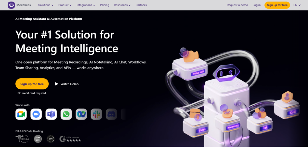 MeetGeek is an AI meeting assistant that can join your Zoom, Google Meet, or Microsoft Teams calls to record, transcribe, and create clear summaries and highlights, so you can stay focused instead of taking notes. It also helps you organize everything in one place (so past meetings are easy to find), and you can send notes and action items straight into tools like Slack, Notion, HubSpot, Google Drive, and thousands more apps through automations. If you meet in person, MeetGeek even has a mobile app that can record and turn those conversations into transcripts and summaries with a tap. And if you’re building your own workflow, it offers an API to work with transcripts and highlights programmatically plus there’s a free plan to get started.