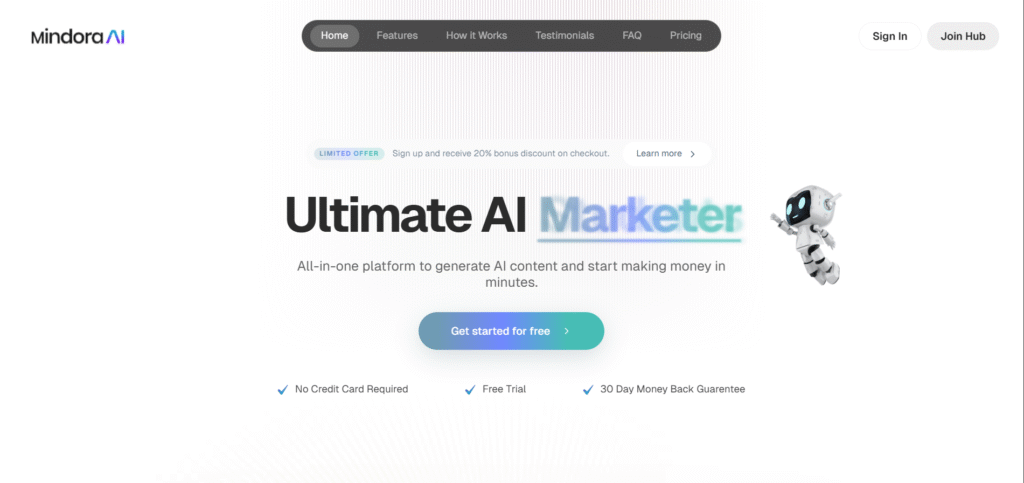 Mindora AI is an all-in-one platform that helps you create content fast using powerful AI tools. Whether you’re a writer, student, marketer, or business, you can generate text, images, videos, voiceovers, and more with just a few clicks. It comes with custom templates, a smart AI assistant, and support for many languages. You can make blog posts, ads, emails, workout plans, cover letters, jokes, and even social media content easily. The platform is simple to use, works on your phone, and doesn’t need coding. With lifetime access, no watermarks, and a free trial, Mindora AI is a smart and affordable way to boost creativity and save time.