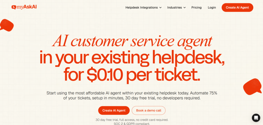 My AskAI is a smart AI customer support agent and Knowledge base tool that learns from your company’s help articles, website, and documents and answers customer questions 24/7 without needing a human to type every reply. It plugs right into popular helpdesk tools like Zendesk, Intercom, HubSpot, Freshdesk and Gorgias and can handle up to about 75% of tickets on its own, giving customers fast answers and saving your team lots of time. When the AI can’t help, it hands the conversation to human support agents, keeps track of what questions it struggled with, and makes your support better over time. Setting it up takes only minutes, you don’t need developers, and it works with your existing content so you keep your brand voice and accuracy high.