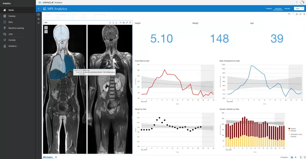 Oracle Analytics is a powerful platform that helps everyone in a business make better decisions using data. It includes tools for creating beautiful visualizations, discovering insights with AI and machine learning, and preparing data quickly without needing coding skills. You can connect to almost any data source, unify information across the company, and explore patterns and predictions using interactive dashboards. Oracle Analytics works on the cloud, on-premises, or a mix of both, and offers strong security and governance to ensure data is safe and consistent. With its easy-to-use tools, even non-technical users can uncover trends, while advanced features support developers and data scientists.