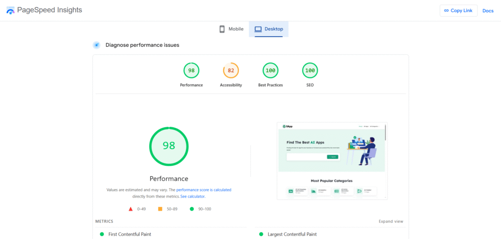 PageSpeed Insights is a reliable and user-friendly tool for measuring web page performance and provides clear, actionable recommendations. It balances lab and real-world data, making it useful for developers focused on improving Core Web Vitals. However, it may not capture all real-world bottlenecks and can be overly strict on certain site types like JavaScript-heavy SPAs.