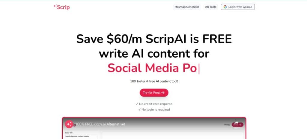 ScripAI is a fast and easy tool for creating content, especially for social media, blogs, and SEO. It is 100% free and does not need a login, which makes it very simple to use. The AI-generated scripts and posts are useful, but sometimes they sound too generic and may need editing. The hashtag and SEO tools help, but they do not always suggest the best keywords. Compared to other AI writing tools, ScripAI is lightweight and quick, but it lacks advanced customization options. Overall, it is a good choice for beginners or anyone who needs quick content, but professionals might need more control over the output.