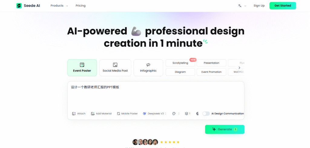 After using Seede AI, I think it is a very fast and simple tool for making designs, and it can help people who are not designers. I like that it gives you a design in just one minute and has many ready-made templates for things like social media and posters. It is really easy to start, and you can ask the AI to change things quickly. But sometimes the design is not exactly what I want, and I need to try a few times to get the right look. Also, the editing options feel a bit limited if you want to make small, detailed changes. It is great for quick and simple designs, but if you need something very professional or unique, you might still need other design tools.