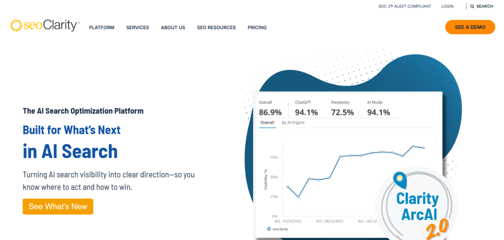 seoClarity is an AI-powered SEO platform built for the future of AI search. It helps brands, enterprises, and agencies gain clear direction on how to win online by improving rankings, content performance, and technical SEO. Trusted by over 3,500 global brands like Samsung, Expedia, and Marriott, seoClarity combines accurate rank tracking, AI-driven insights, and automated optimization tools to simplify complex SEO processes. With solutions for content creation, technical site audits, and AI visibility tracking, it empowers teams to scale SEO success efficiently and stay ahead in the fast-changing search landscape.