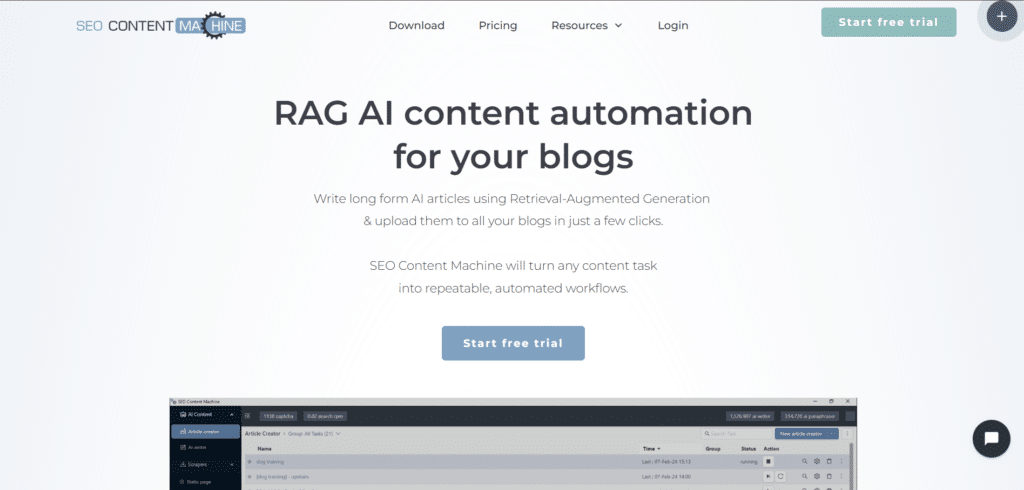 SEO Content Machine is a powerful content automation tool with versatile web scraping and AI features. It has a steep learning curve and needs human editing for best results but is highly regarded for bulk SEO content creation and frequent updates.