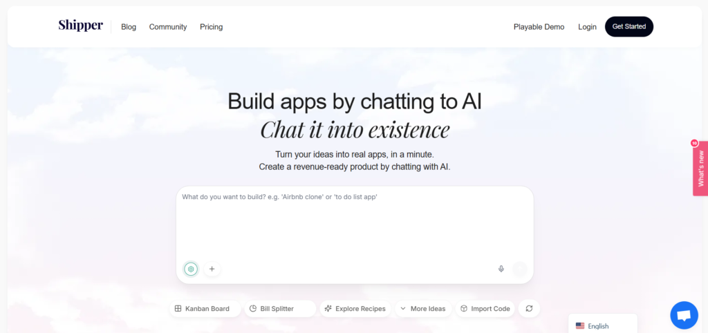 Shipper.now is an AI-powered no-code app builder that lets you turn your ideas into real, live apps just by typing in plain English no coding, design, or setup headaches required. You simply describe what you want, and its smart AI “builds it instantly,” including frontend, backend, database, hosting, user auth, and more, so your product can go live fast. It even includes The Advisor, an AI co-pilot that gives you proactive suggestions to improve and grow your project, and you own the code and can export it whenever you like. Whether you want a simple tool, a full SaaS product, or a custom web app, Shipper.now makes building it easy, fast, and accessible to beginners and experienced makers alike.