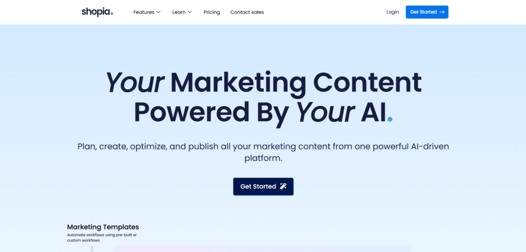 Shopia AI is a powerful all-in-one tool that helps marketers, writers, and businesses create better content faster. It can write blog posts, social media updates, product descriptions, and even do market research or competitor analysis—all using smart AI. You can customize the content with your brand voice, company details, and even upload documents so it sounds just like you. With over 60 ready-to-use templates, a personal AI chat assistant, and tools to edit, organize, and publish content, Shopia makes everything super easy. You can also run tasks in bulk, build your own workflows, and work with your team in one place. Whether you’re a freelancer or a big team, Shopia helps you do more with less effort.
