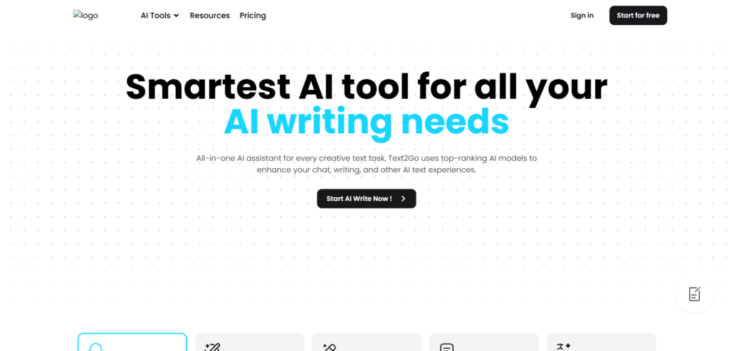 Text2Go is a smart all-in-one AI writing tool that helps you create, fix, and improve all kinds of text in just seconds. It offers powerful features like the AI Story Writer, AI Humanizer, AI Text Generator, AI Rewriter, AI Translator, and AI Answer Generator. You can quickly write emails, blogs, stories, and even professional replies with ease. Text2Go is great for making AI content sound natural and for helping students, writers, and businesses save time. It can also rewrite and translate text perfectly to fit different languages and audiences. The best part? It’s simple, fast, and you can try many features for free.