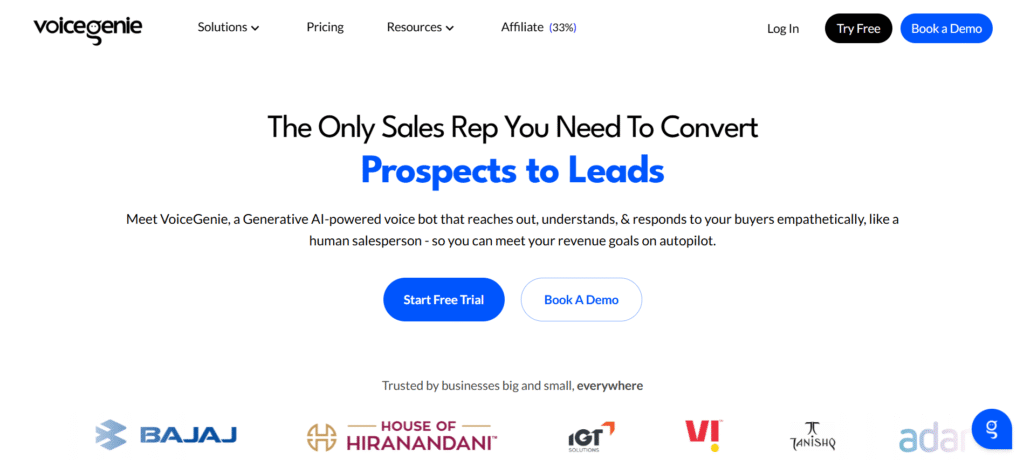 VoiceGenie is your always-on, AI voice bot that talks like a real salesperson and helps you grow fast. It calls or answers, understands intent, and keeps context so every chat feels personal. It can book meetings, handle FAQs, onboard new users, support billing & payments, try simple troubleshooting, spot upsell moments, collect feedback, and work in multiple languages all 24/7. Set it up in 5 minutes: create your assistant, get a number, import contacts, and launch a campaign. It learns quickly, stays persistent, and shares useful call insights so your team improves. Connect it with tools like Twilio, HubSpot, Plivo, ElevenLabs, Calendars, and GoHighLevel. Trusted by brands like Adani, LG, Vodafone, and Tanishq, VoiceGenie helps stop funnel leaks and turns qualified leads into loyal customers on autopilot.