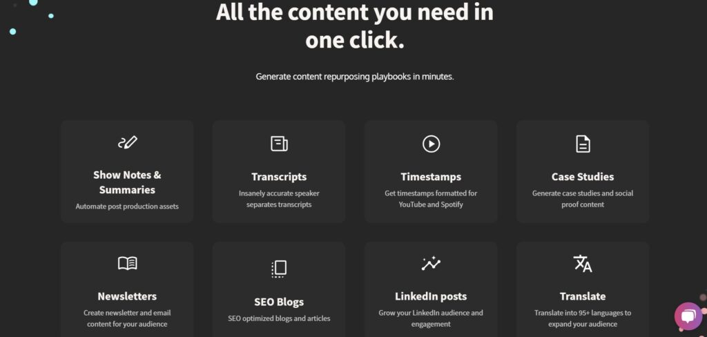 | AI Features | AI Chat, AI Transcription Generator, AI Translations |